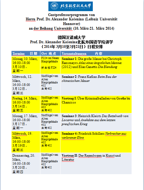 德国汉诺威大学德语系教授Alexander Košenina讲座通知