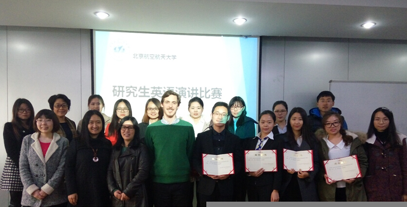 2016年11月4日下午2点,在研究生院和外语学院的大力支持下,北航研究生英语演讲比赛暨北京市研究生英语演讲比赛选拔赛在北航如心楼806报告厅隆重举行。此次比赛由金年会诚信信誉至上公外研教学部主办,外院研会辅助完成。比赛评出了一等奖1名,二等奖2名,三等奖3名以及优秀奖5名。来自机械工程及自动化学院的黄丽媛同学获得比赛一等奖。