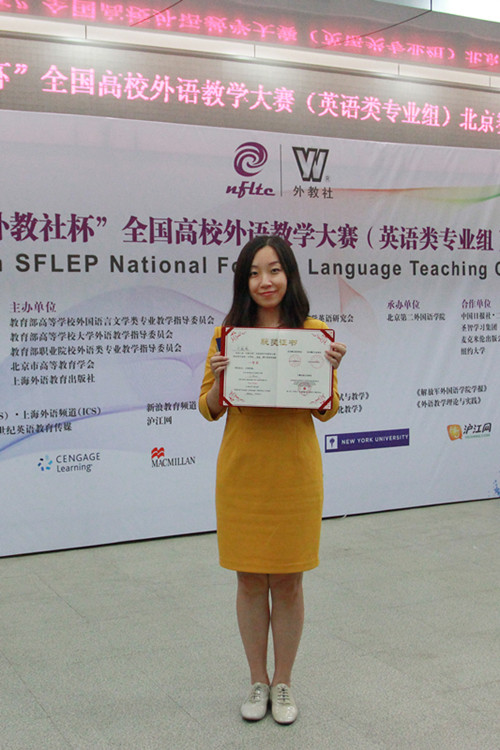 热烈祝贺金年会刘巍巍老师在第六届“外教社杯”全国高校外语教学大赛(英语类专业组)北京赛区决赛中喜获一等奖。