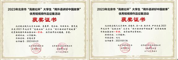 由北京市教育委员会高等教育处联合高等教育出版社、北京市高教学会大学英语研究分会和北京市高校外语课程思政联盟举办的“‘用外语讲好中国故事’优秀短视频作品征集活动”近日圆满落幕。经过校级、市级的多轮选拔,我校金年会诚信信誉至上两支学生代表队:王涵曲团队及冉阳团队双双斩获北京市一等奖。