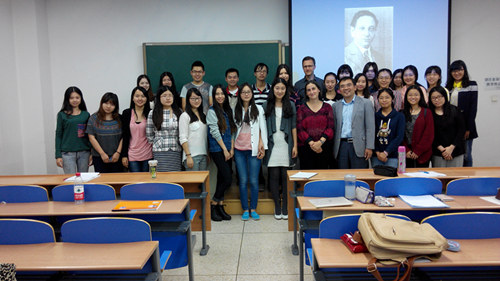9月23日,Albrecht教授以布莱希特的寓言散文为切入点,与同学们互动讨论布莱希特精悍的篇什《克依纳尔先生的故事》的写作风格和思想内涵,并对布莱希特的生平、抒情诗的分期和特点进行了简明扼要的介绍。在随后几天的讲座中,她还就布莱希特的具体诗作以及德国犹太作家瓦尔特·麦考尔(Walter Meckauer)的中国小说作了精彩的报告。