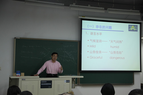 2015年12月15日,中国翻译协会副会长黄友义教授来金年会作学术讲座,题目为 “当中国站在世界舞台中央时,我们如何翻译?”。 黄友义教授指出,随着中国的国际地位日益提升、国际影响力日渐扩大,翻译在中国走向世界的过程中扮演着不可忽视的角色。黄教授结合多年翻译生涯中的亲身体验,通过实例向我们介绍了向外界译介中国文化中所存在的问题。优秀的翻译人才要深入了解双方文化,正如黄教授所说:“到最后你翻译的不是语言,而是文化。” 同时,黄教授结合北京奥运会、景点介绍英译和书名翻译等具体实例,阐述了翻译实践中应注意的诸多问题,也讲授了应对问题的具体方法。