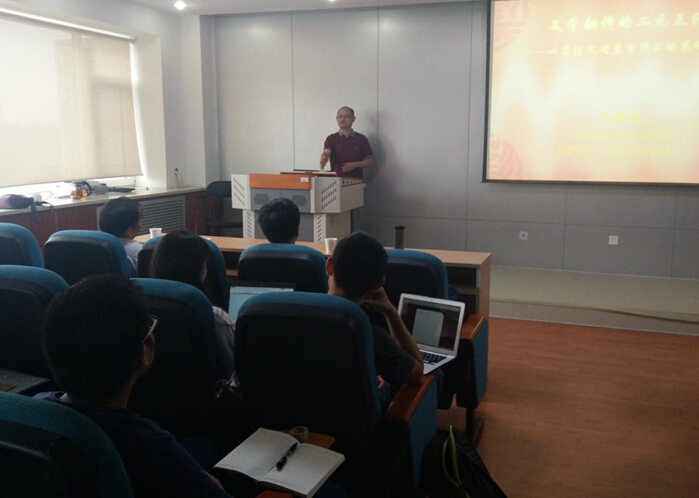 朱振武教授以译介中的认同缺失为切入点展开了此次讲座,他认为译者在翻译过程中需要对自身文化有一定的自觉和自信。朱教授谈了三点关于文学翻译的看法:他认为文学翻译者要对文学作品有宏观的把握而不要局限于思考少数“错”与“讹”层面的问题;文学翻译要重视在文学文化上的贡献;而对于文学翻译中出现的“错”与“讹”的问题则要考虑其在特定历史时期的特殊贡献。接着朱教授以莫言作品的英译为例,讲解了葛文浩在翻译莫言作品中运用到的二元互补的情况,即翻译过程中的归化和异化,罗列出了四个要点:要忠实地异化;恰当地规划;适时地调整;偶然地误异。而在谈到文学翻译引进的问题时,朱教授则认为要秉持“读者优先”的翻译策略、“文化平等”的翻译思想和“入乡随俗”的文化抉择等原则。最后在谈到莫言作品成功走出去对中国学者的启示方面,朱教授认为中国文学走出去,要首先考虑优秀的文学作品要优先走出去,但绝不是要改头换面,曲意逢迎,削足适履,委曲求全以适合西方人的价值观为代价;而要真正将中国文学推向世界,就必须统筹安排、整合和优化翻译资源,同时要改变概念,认清译入和译出的本质差异,形成翻译自觉。
