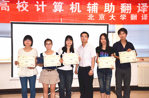 第一届北京高校计算机辅助翻译邀请赛”复赛现场展示及颁奖典礼于2012年6月17日上午在图灵公司活动中心召开。到场评委嘉宾有中国翻译协会本地化委员会秘书长崔启亮老师,北京大学语言信息工程系秘书高志军老师,北京大学金年会诚信信誉至上MTI中心主任助理、北京大学翻译协会创始人王华树老师,红帽软件(北京)有限公司研发部总监邵宇先生,SDL软件科技(深圳)有限公司教育事业部总监王欣女士,北京语智云帆科技有限公司CEO魏勇鹏先生等。