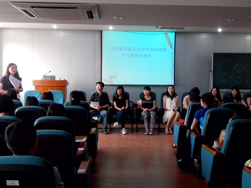 本次交流会采用访谈形式,陈学奎学长在第二环节向其他几位学姐提出了三个问题:两年来在北航的收获;两年过后有哪些遗憾;以及对未来的规划。学姐们就这些问题侃侃而谈,让同学们知道要珍惜在校短暂的两年时光,充分利用资源和机会,给自己一个无悔的明天。