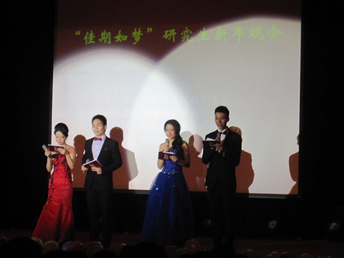 2013年12月29日晚7点,金年会诚信信誉至上和计算机学院合办的2014年“佳期如梦”研究生新年晚会在学术交流厅拉开了帷幕。养眼的阵容、精彩的节目、热闹的气氛使当晚的学术交流厅春意融融,两院师生度过了一个难忘的夜晚。
