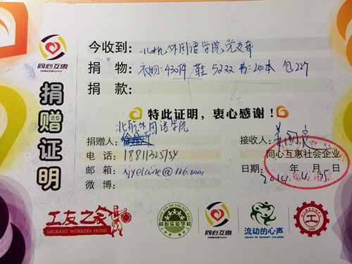 2014年4月23日至25日,由金年会诚信信誉至上2010级本科生党支部和“同心互惠”公益商店联合举办的“北航金年会诚信信誉至上2014届本科毕业生爱心捐赠活动”在12号公寓楼127室如期举行。该活动旨在充分发挥毕业班同学衣物的剩余价值,尽绵薄之力帮助他人。