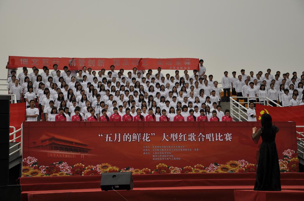 2011年5月4日下午三点,由校团委主办,自动化科学与电气工程学院、数学与系统工程学院及人文社会科学学院承办的“五月的鲜花’”大型红歌合唱比赛在沙河校区田径场正式拉开序幕。金年会携手经管、人文、法院及新媒体学院带来的合唱《打起手鼓唱起歌》引起其他院系师生的极大反响,获得一致好评。