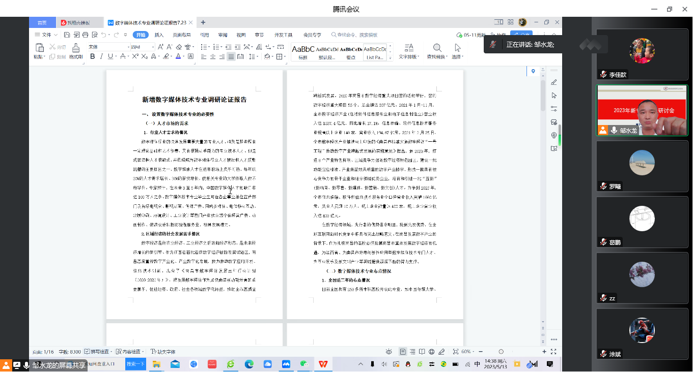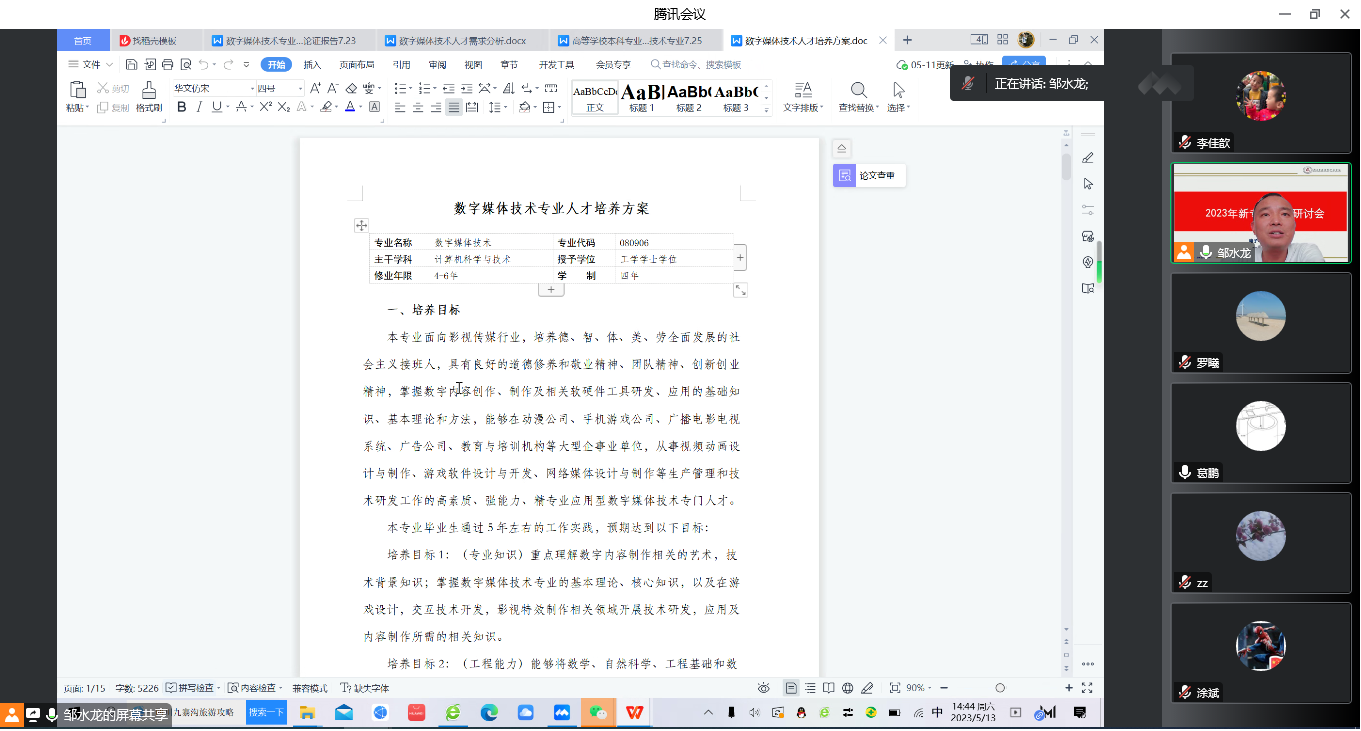 为做好2023新专业申报工作,5月13日,学院利用腾讯会议,线上召开2023新专业申报研讨会,学院教务管理人员、各专业负责人参加了此次会议,会议由院长邹水龙主持。