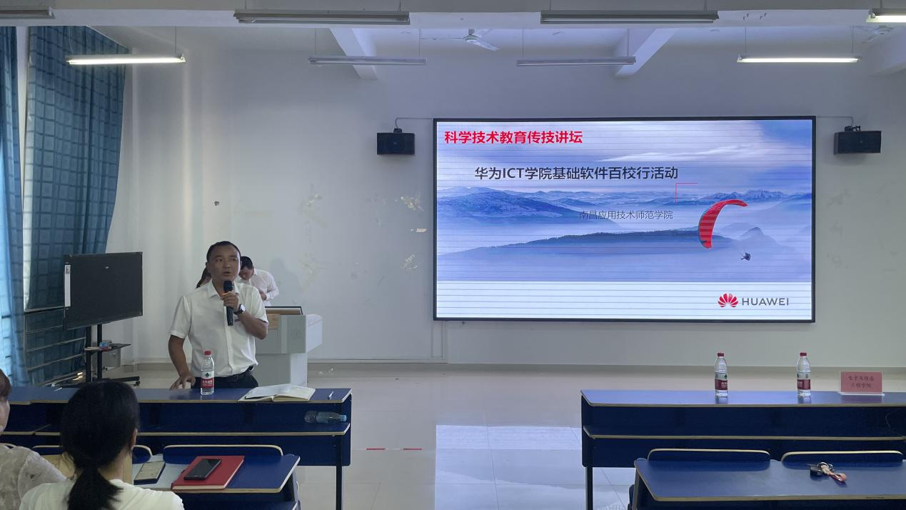 报告会上,鄢义龙分别从行业趋势、人才需求、华为简介、项目介绍、激励政策等五个方面做了精彩分享。并对“华为ICT学院千校万里行一基础软件百校种子计划”项目做了详细介绍,鼓励教师将华为基础软件技术融入教学体系。他表示,计算机专业连续10年霸占就业薪酬排行榜前列,计算机专业学生就业前景非常广阔。整场讲座气氛热烈,互动频繁,使在场教师、学生受益匪浅。