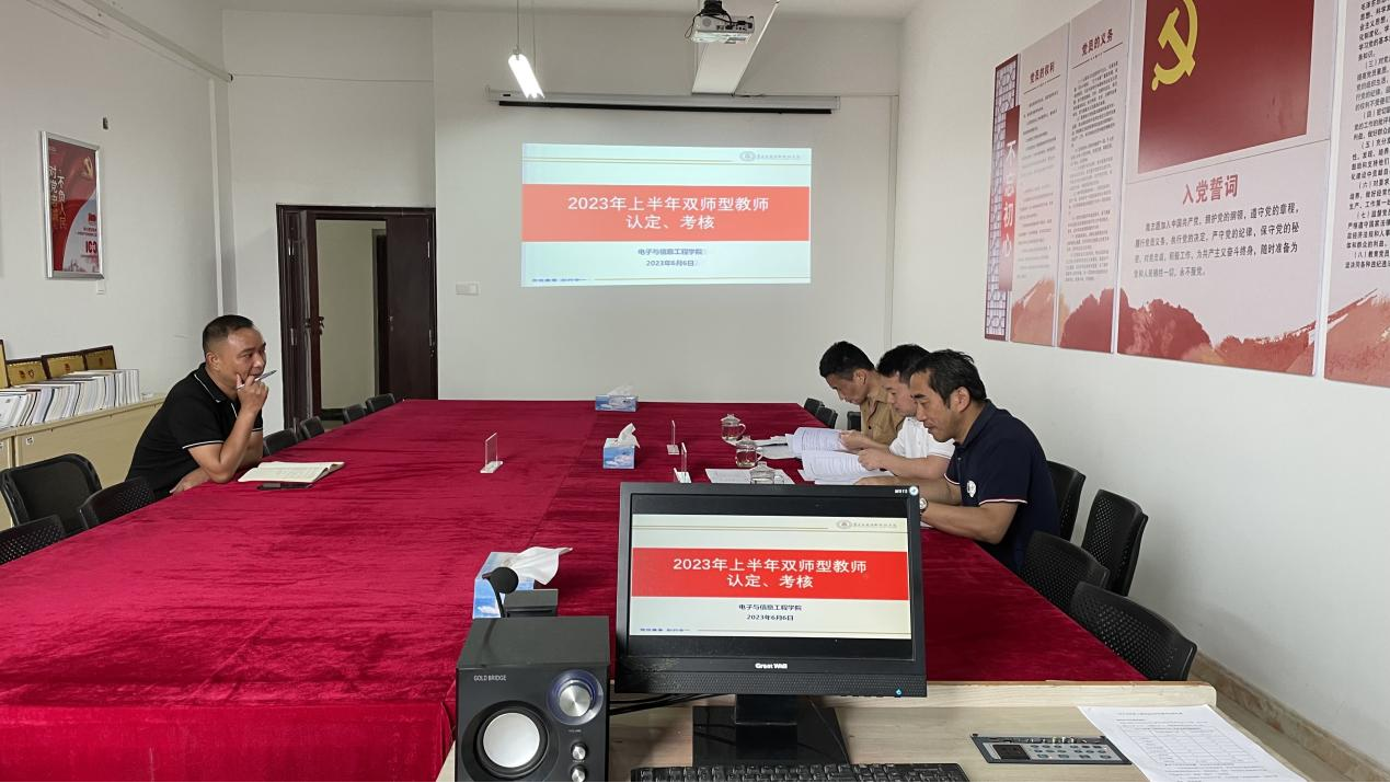 为加大学院双师型队伍建设,进一步提高教师的职业素养与技能,按照学校双师型认定、考核工作的整体部署,6月6日,学院在会议室1407开展了2023年上半年双师型教师认定、考核工作。本次认定、考核由教学督导办公室主任杨长红、人力资源部副部长涂海亮、教务处副处长郭建国等三位校内专家担任评委。