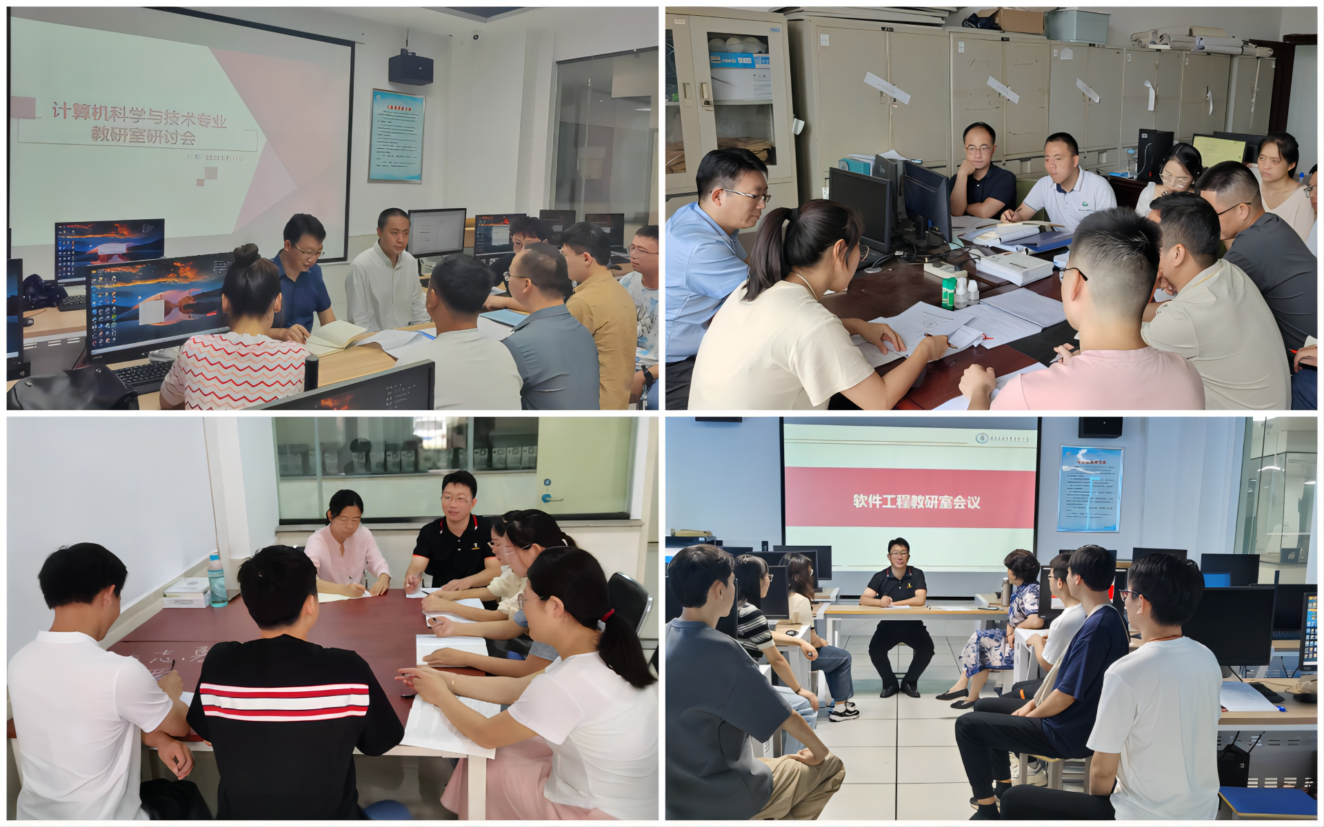 继学院新学期教学工作会议之后,申搏各教研室积极行动落实,8月30日至9月1日,计算机科学与技术专业教研室、软件工程专业教研室、电子信息专业教研室和数字媒体技术专业教研室等分别组织所属老师参加了新学期第一次集体教研活动。副院长刘军深入各教研室参与教研。