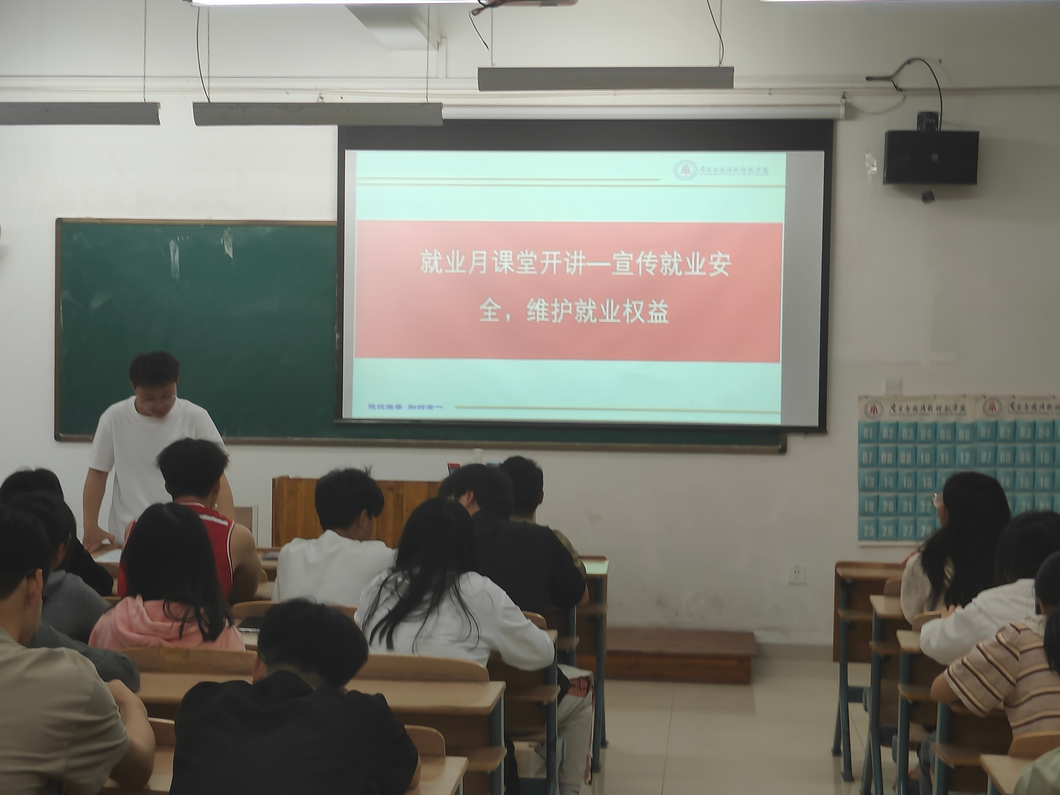 授课人龙少帅老师主要围绕高校毕业生就业观念培养、就业政策解读等方面进行宣讲指导,同时运用一些相关案例进行讲解“如何在就业竞争中脱颖而出”等等。宣讲会不仅为同学们提供了一个了解就业形势、学习就业知识的平台,更激发了他们的创新精神和就业热情。同学们纷纷表示,通过此次宣讲会,他们更加明确了自己的职业方向和发展目标,也更有信心面对未来的就业挑战。