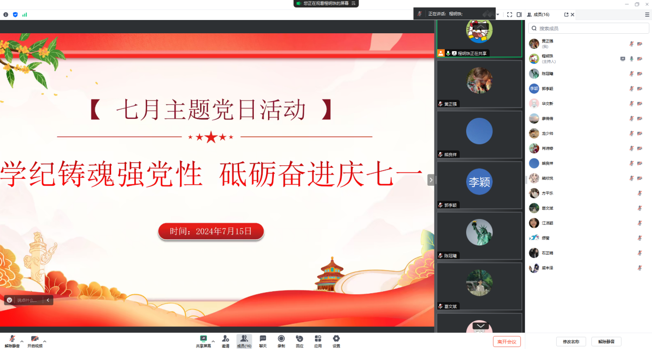 为庆祝中国共产党成立103周年,弘扬伟大建党精神,贯彻落实新时代党的建设总要求,进一步健全全面从严治党体系推动党纪学习教育走深走实,SUNBET申搏第二党支部于7月15日召开线上会议,开展了“学纪铸魂强党性 砥砺奋进庆七一”主题党日活动。