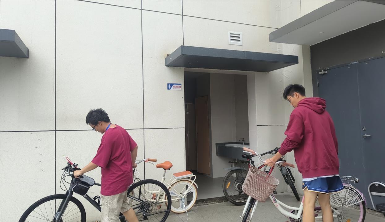 活动开始,肖诗婷老师对宿舍门口的自行车车辆摆放做出区域规划,明确摆放区域,组织志愿者们整理摆放自行车车辆。