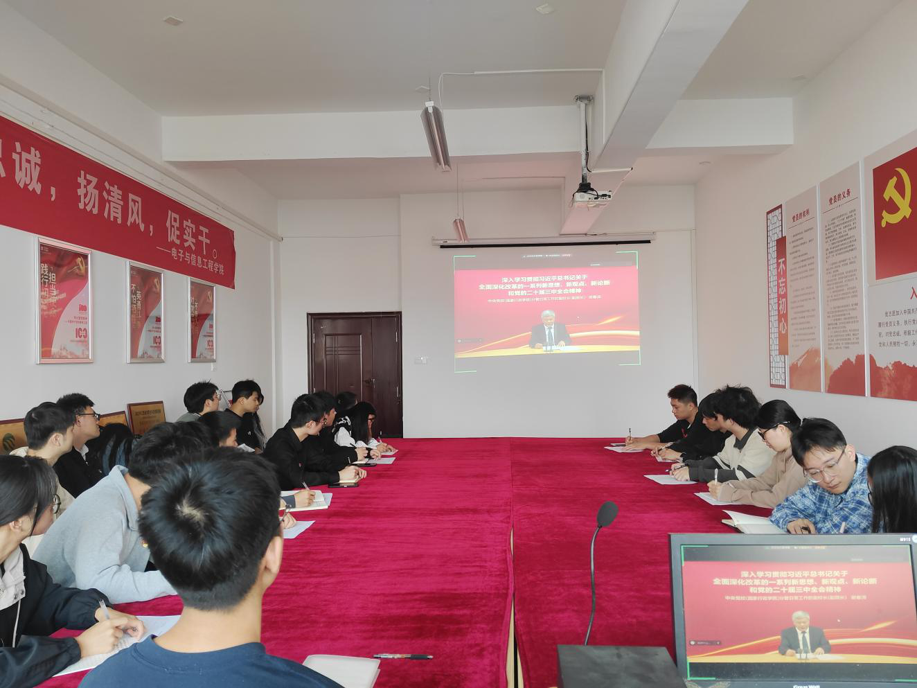 在观看视频后,同志们积极交流讨论,踊跃分享自己的学习心得和体会。党员们表示,通过此次集中学习,对党的二十届三中全会精神有了更深刻的理解和认识,进一步增强了责任感和使命感。今后,他们将以全会精神为旗帜,以更加饱满的热情和昂扬的斗志投入到学习和生活中,为推动学院事业的繁荣发展贡献自己的力量。