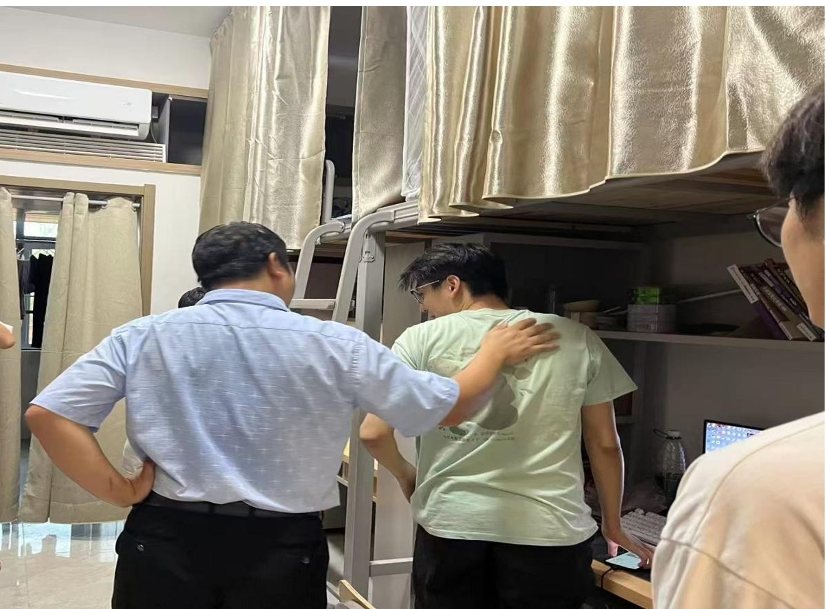 2024年9月30日下午,为充分了解2024年新生入学后的适应情况,帮助新生更好更快地融入新环境。申搏院长魏艳平、党总支书记江建华带队,与申搏辅导员一同深入学生公寓走访看望2024级新生。