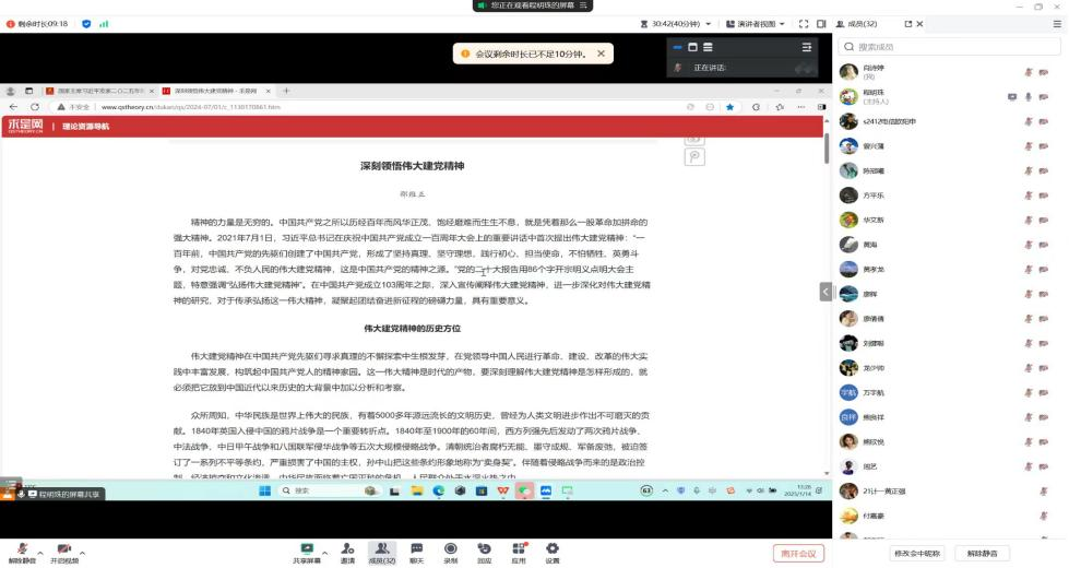 为持续深入学习贯彻习近平新时代中国特色社会主义思想,弘扬伟大建党精神,使全体党员更加自觉地学习党章、遵守党章、贯彻党章、维护党章,SUNBET申搏第二党支部于2025年1月14日,在腾讯会议组织召开了“学思践悟新思想 踔厉奋发启新程”主题党日活动。支部全体党员参加了此次会议,会议由党支部书记程明珠主持。