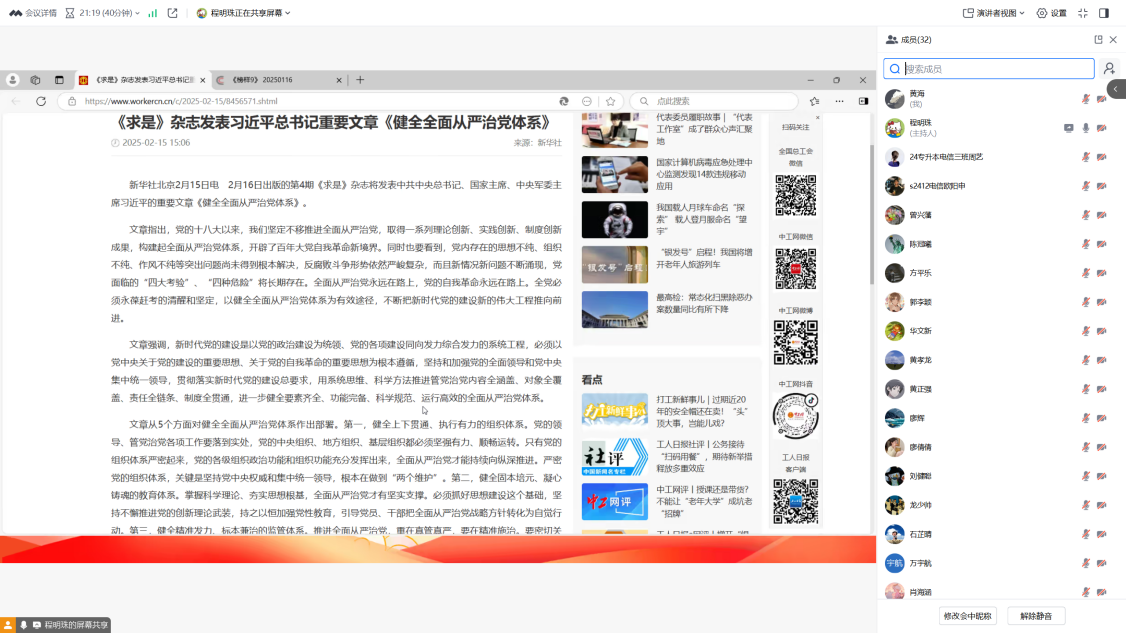 随后,组织支部党员学习观看《榜样9》,节目中鲜活的案例、真挚的访谈,生动勾勒出新时代党员的先锋群像,给全体党员们留下了深刻的形象,也深入理解了习近平新时代中国特色社会主义思想在基层的熠熠生辉。在学习过程中,党员们聚精会神,被这些榜样事迹深深打动,认真记录重点内容,程明珠也不时对视频内容进行解读和赞扬,引导大家深入思考、积极交流,鼓励大家要以榜样为标杆,锤炼品德修为,提升专业素养,勇于担当作为。