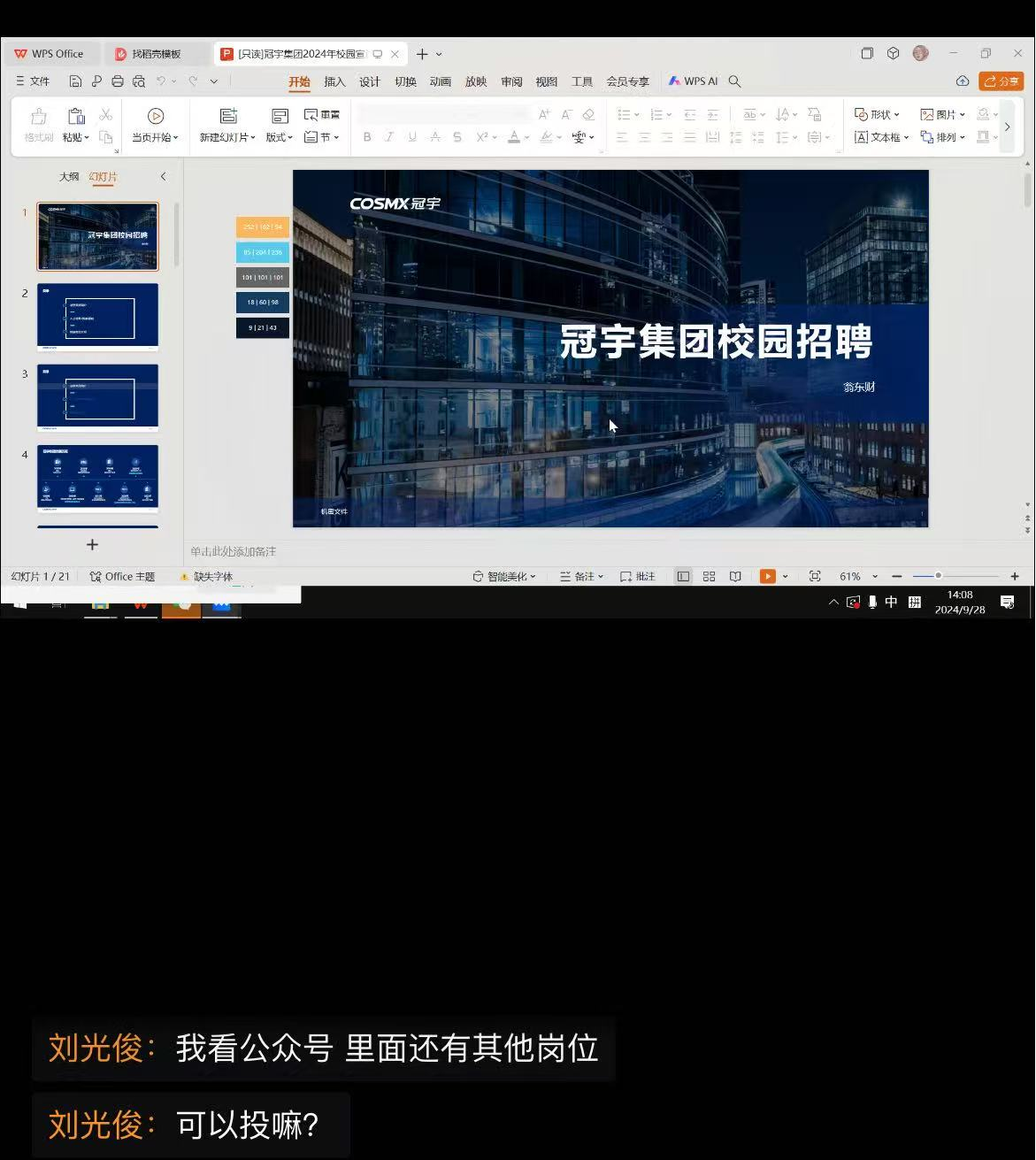 本次线上招聘会,冠宇集团针对申搏的专业特点,精心准备了一系列招聘岗位,这些岗位不仅涵盖了电子信息工程、计算机科学与技术、通信工程、软件工程等相关专业,还为毕业生们提供了广阔的发展空间和职业晋升机会。冠宇集团的招聘负责人详细介绍了公司的发展历程、企业文化、业务范围以及招聘岗位的具体要求。同时,他还分享了冠宇集团对应届毕业生的培养计划和薪酬福利体系。此外,冠宇集团还特别重视员工的职业发展,提供了技术通道和管理通道双重晋升机制,为员工的个人成长和职业发展提供了有力保障。