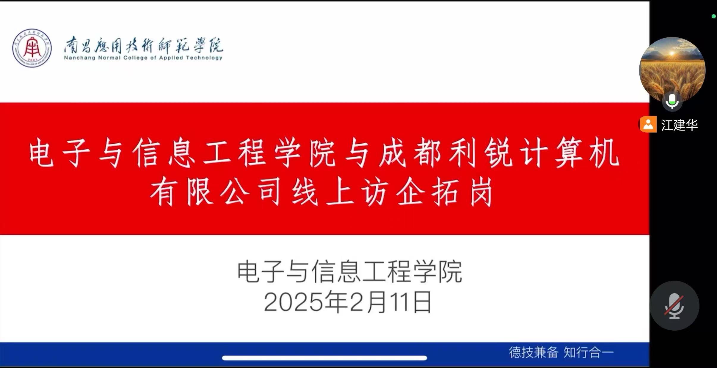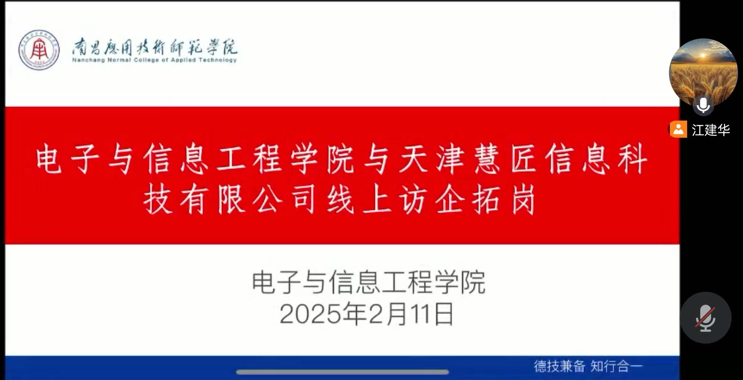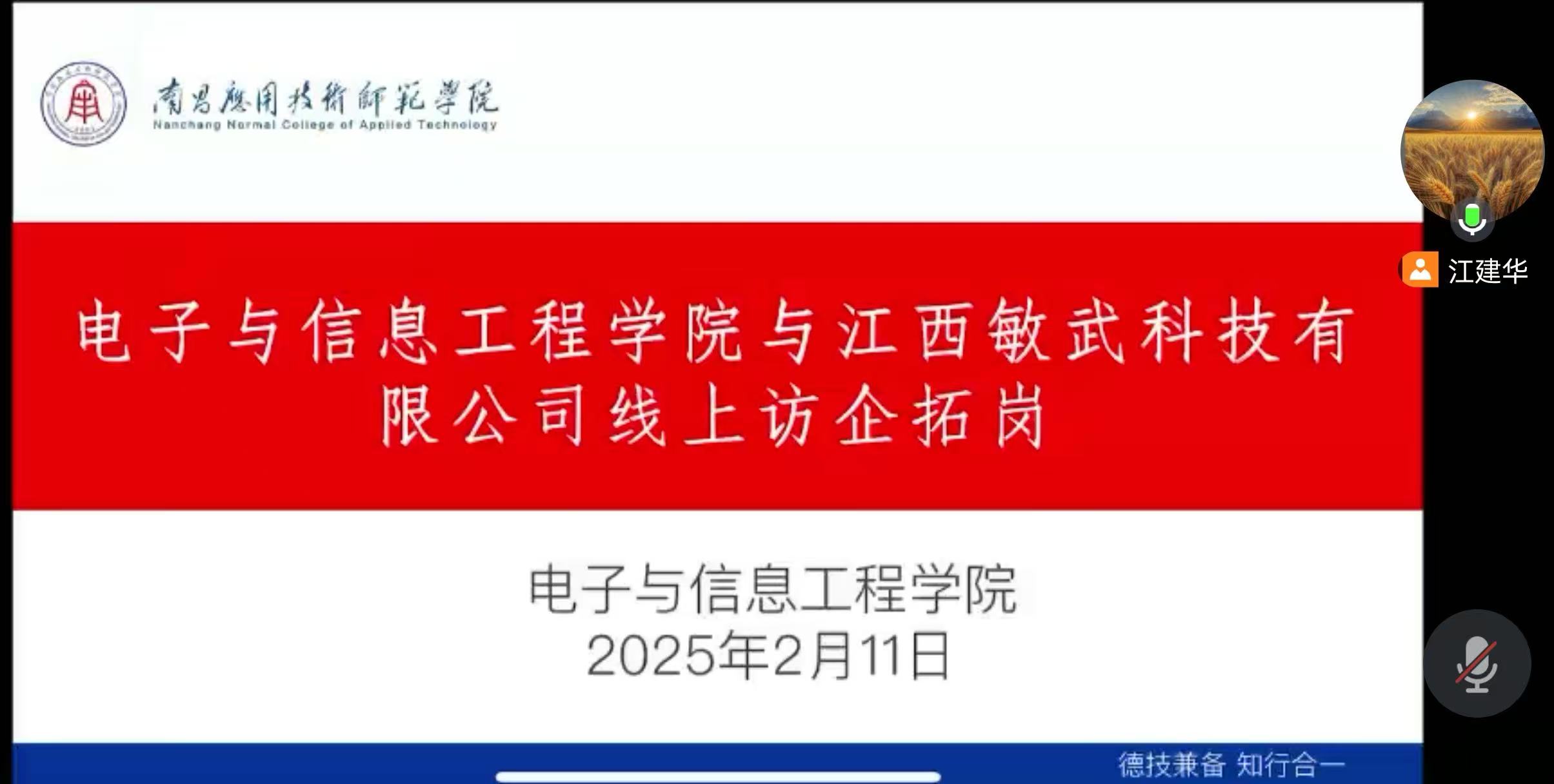 为做好申搏2025届毕业生就业工作,持续为毕业生与用人单位之间搭建供需沟通桥梁,电子与信息工程学院于2月11日举办了线上访企拓岗洽谈会。此次洽谈会邀请了成都利锐计算机有限公司、江西敏武科技有限公司、天津慧匠信息科技有限公司、中林广生科技股份有限公司等各企业代表进行宣讲,就业岗位覆盖电子与信息工程、计算机科学与技术、软件工程等相关专业,申搏党总支书记江建华出席会议。