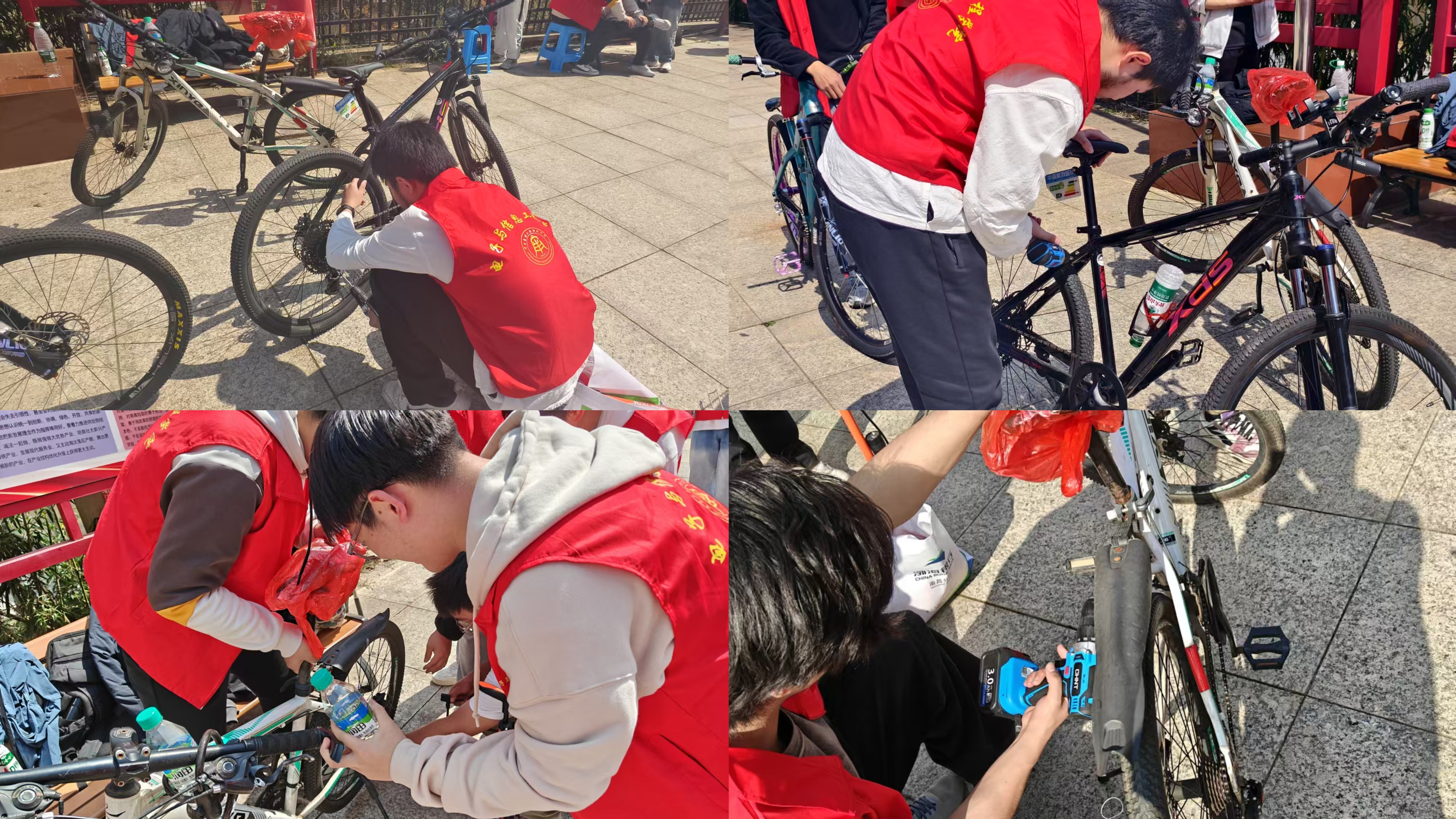 参与此次活动的学生来自学院相关专业,他们凭借扎实的专业知识和熟练的操作技能,为社区居民的自行车提供全面检修与维修服务。活动现场,学生们分工明确,有条不紊地忙碌着,有的仔细检查自行车的刹车系统,调试刹车灵敏度;有的专注于修理损坏的链条,更换磨损的齿轮;还有的为自行车轮胎补气、更换内胎。面对居民们提出的各种自行车故障问题,学生们都耐心解答,并迅速给出维修方案。