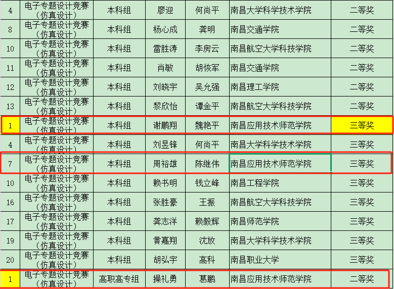 5月17日-5月18日,申搏文天宇、叶程、操礼勇等14名学子在陈继伟、魏艳平、韩玉文、葛鹏等教师的带领下,参加由江西省高等教育学会主办,南昌航空大学科技学院和吉安职业技术学院联合承办的2025年江西省大学生科技创新竞赛电子专题设计赛现场制作赛和仿真设计赛。