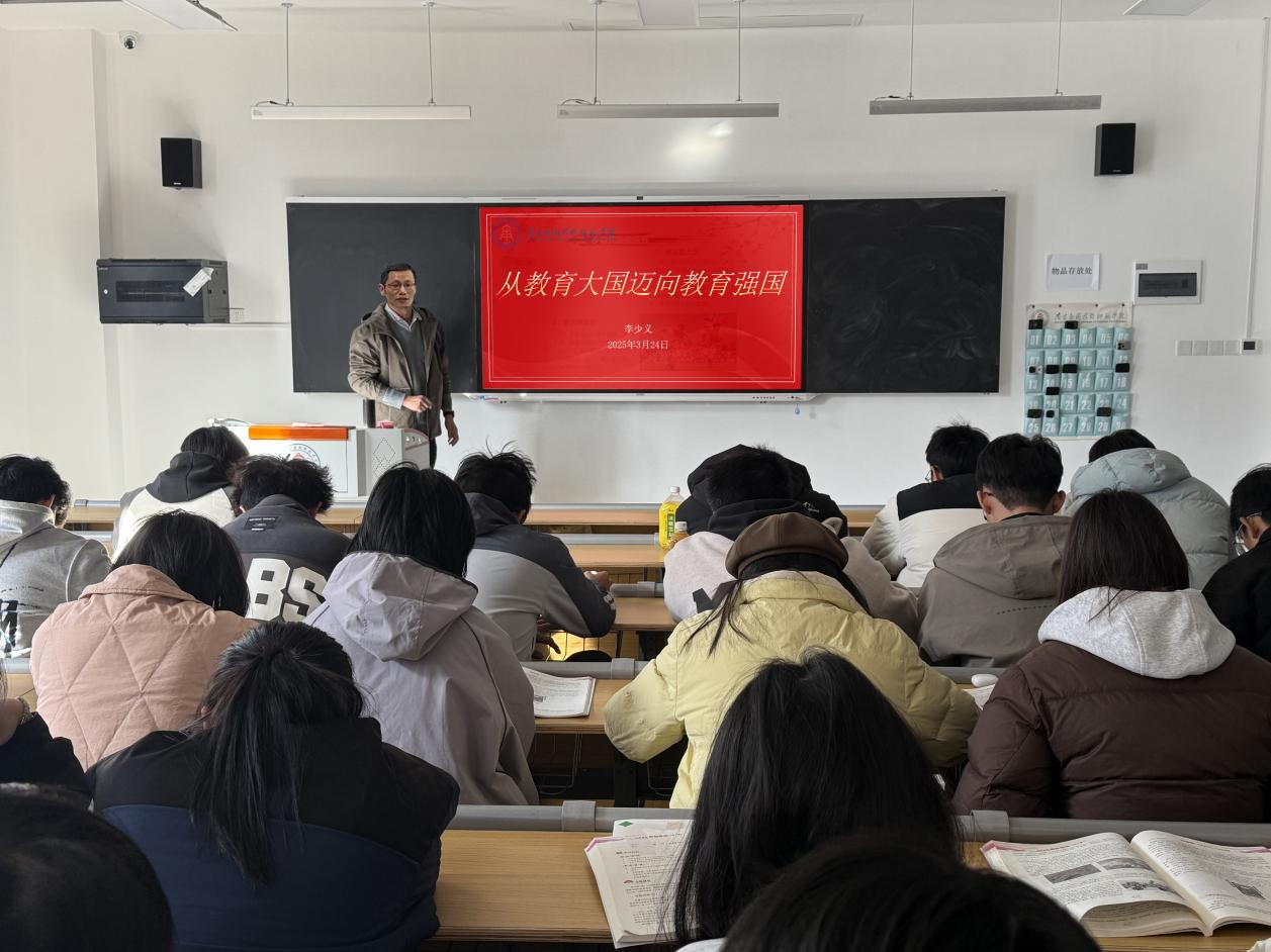 李少义以《从教育大国迈向教育强国》为题,拉开了思政课的序幕。他从“何谓教育强国”“为什么要建设教育强国”“怎样建设教育强国”教育“三问”,为同学们带来了一堂富有启发性的思政课。李少义深刻阐述了教育是强国建设、民族复兴之基。建成教育强国是近代以来中华民族梦寐以求的美好愿望,是实现以中国式现代化全面推进强国建设、民族复兴伟业的先导任务、坚实基础、战略支撑。