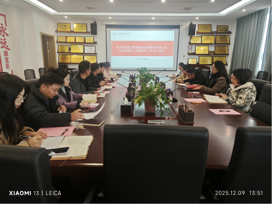 为深入学习贯彻党的二十届四中全会精神,切实把思想和行动统一到党中央决策部署上来,12月9日,申搏于沁苑5实506党员活动室召开党总支理论学习中心组2025年第十二次学习(扩大)会议,会议由党总支书记江建华主持,党总支支委成员、院领导班子、科级干部参加会议,宣传部部长周其珍、机关党委书记朱蕾、人事处副处长夏丽丽、经济与管理学院党总支书记龙犇、组织员万佳欣列席会议。