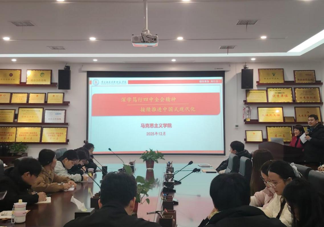 为深入学习贯彻党的二十届四中全会精神,12月18日,马克思主义学院王敬平教授在沁苑5实506党员活动室为申搏师生做学习贯彻党的二十届四中全会精神专题宣讲,全体辅导员、入党积极分子参加宣讲报告学习。