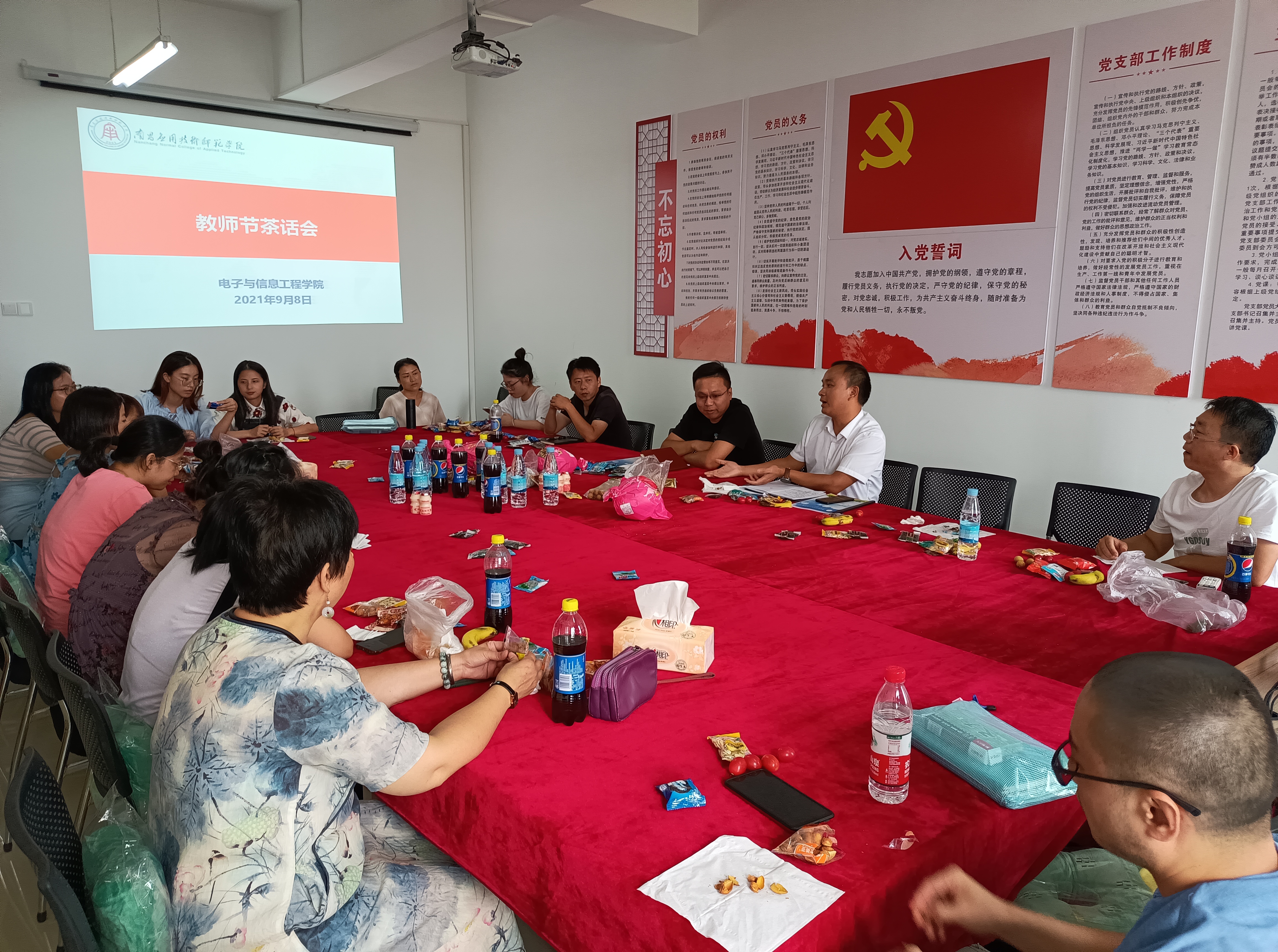 为庆祝第37个教师节,9月8日,SUNBET申搏在学院会议室举办教师节茶话会,全体教职工参加了会议,会议由院长邹水龙主持。