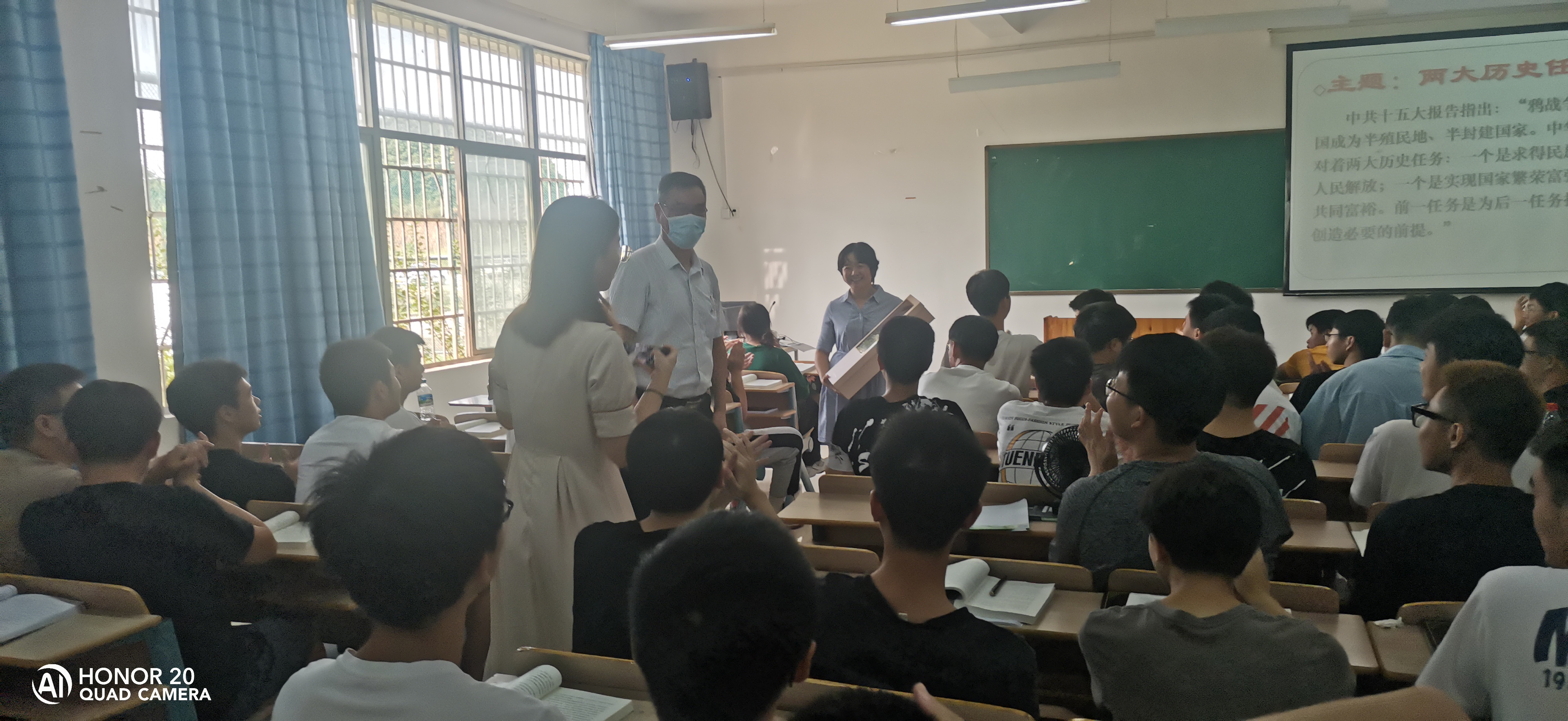 按照教学科研工作部下发的“关于开展 2021-2022 学年第一学期“开学第一课” 检查工作的通知”( 南应师教科字[2021]2 号)文件精神,9月9日上午,校领导郭宇与招生就业服务中心主任江建华、SUNBET申搏院长邹水龙、院党总支副书记龙犇一起,深入SUNBET申搏课堂,认真聆听了张丹老师主讲的《中国近现代史纲要》第一堂思政课。