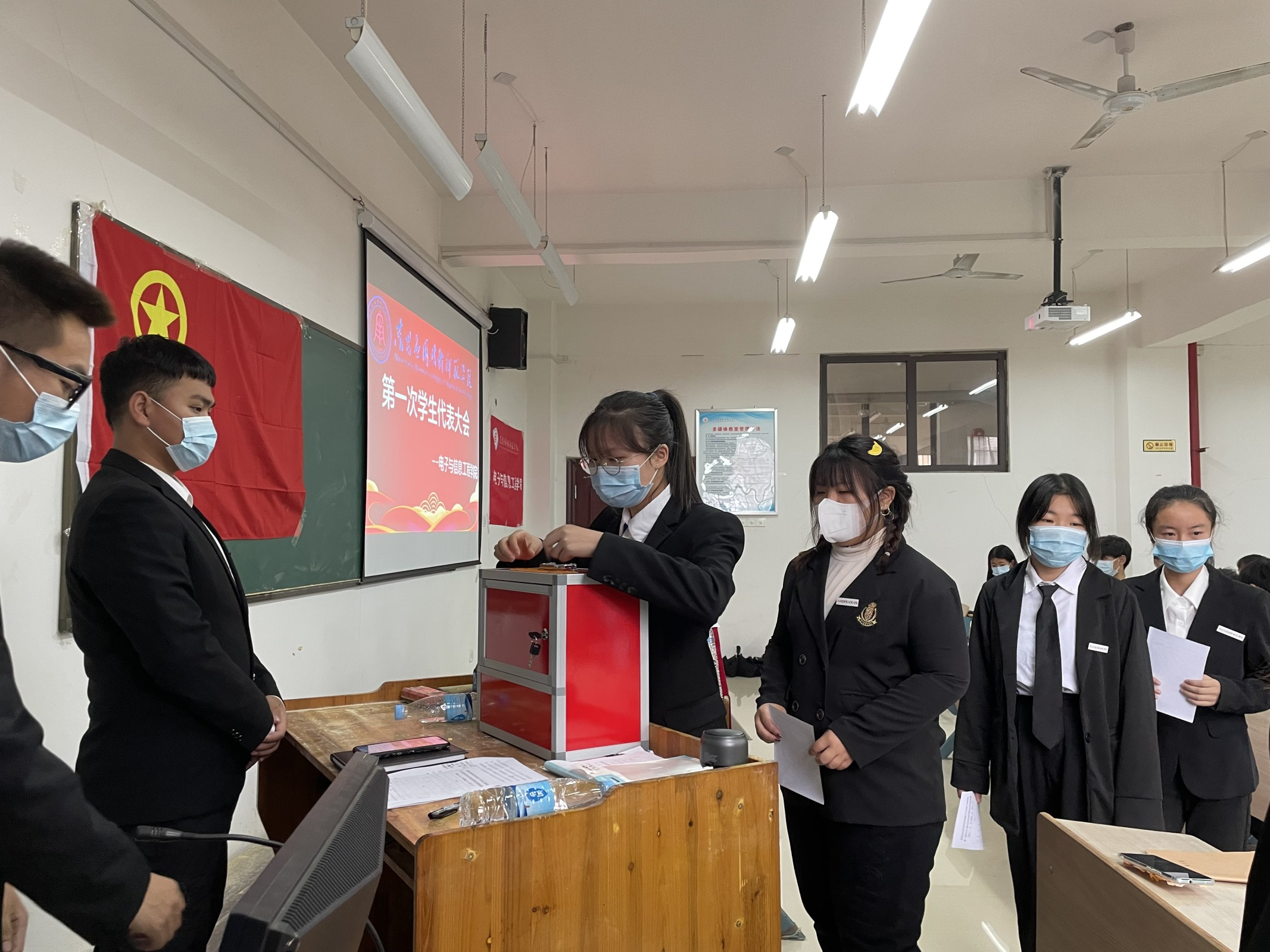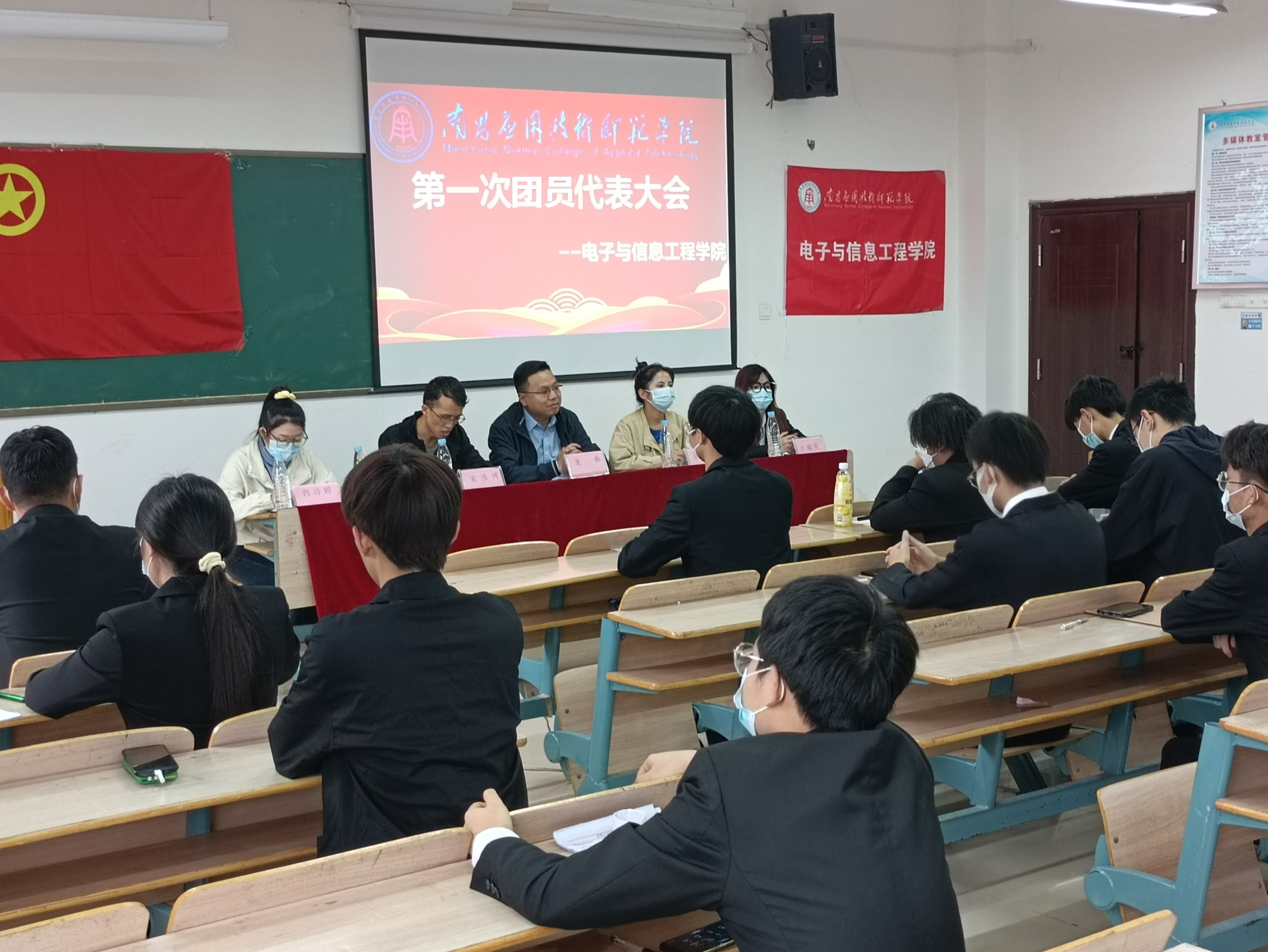 2021年11月17日下午3点30分,SUNBET申搏SUNBET申搏第一次团员代表大会(下面简称“团代会”)在教学楼3105教室召开。SUNBET申搏党总支书记龙犇、校团委老师宋伟博、学生会指导老师李倩文、学院团总支学生副书记易祖豪、学院组织部负责人及10名团员代表出席本次会议,会议由易祖豪主持。