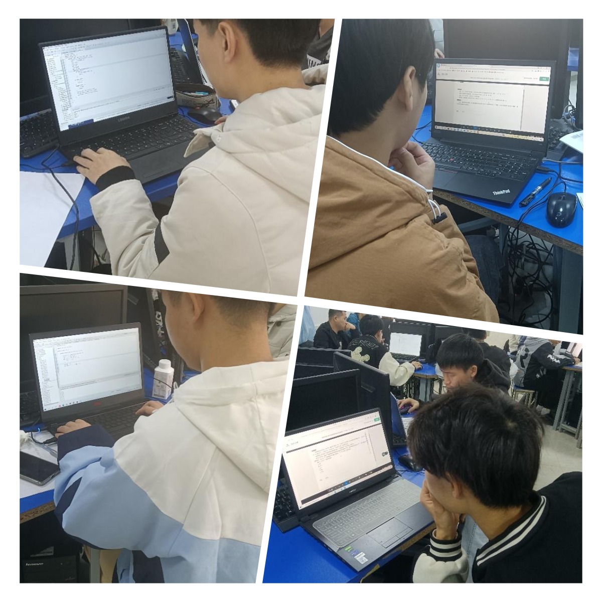 上午8:00,参赛选手有序进场入座,监考老师宣读比赛规则、提醒注意事项,并发布考试网址。8:30,比赛正式开始,比赛过程中,参赛选手严格遵守考场秩序、沉着思考,在有限时间内以缜密的逻辑思维、灵活机动的应变能力对考题进行独立解答。考场环境整肃、风纪良好,回荡着敲击键盘的清脆声。