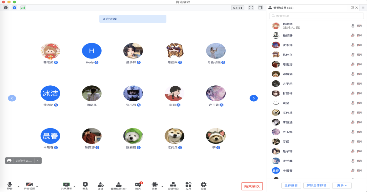 学生们普遍在刚开始上课的时候签到情况都很好,但是到后面,可能由于网络的原因,有的学生掉线没有重新登入,也或者有的学生存在侥幸心理,签完到直接就下线了,因此针对以上种种问题,会在课堂中点名提问,也会在课堂后半段,再次对照花名册,查看是否有长时间不在线的学生。同时,使用腾讯课堂教师版APP提供的考勤管理功能,可以在下课后,很方便的查看每个学生在线观看的时长,针对时长不足的学生提出警示,因此不管是课上还是课下,都严格管理学生学习情况,杜绝散漫混乱的状况。