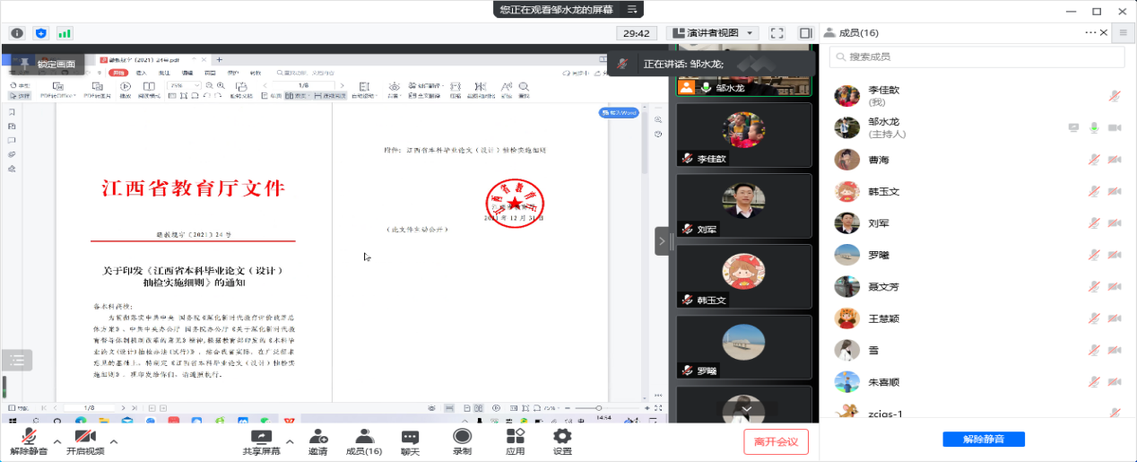 会上,邹水龙首先传达了学校第五次教学科研工作例会会议精神及校领导指示要求,宣读了“SUNBET申搏2021-2022学年第二学期教育教学专项检查工作方案”,并带领大家全文学习了《江西省本科毕业论文(设计)抽检实施细则》。随后,邹水龙就常态化疫情防控、线上教学、教育教学专项检查、新专业建设、实验室规划建设、科研等工作进行了详细布置。