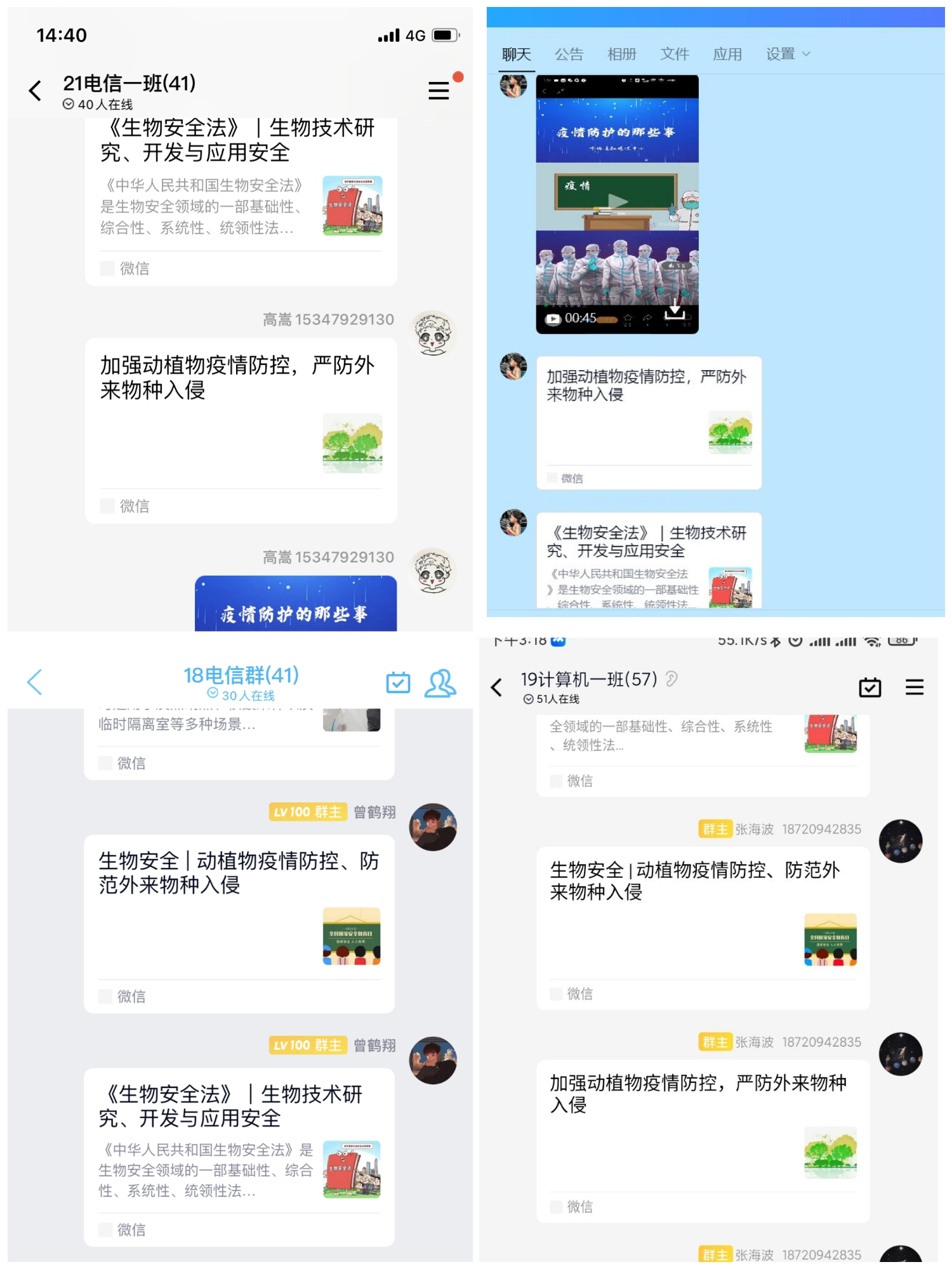 通过微信工作群、QQ班级群等平台向师生推送有针对性的生物安全教育内容。