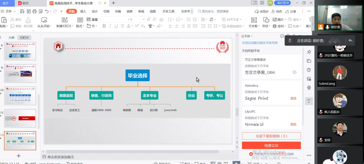 4月27日,华为ICT学院百校行活动—SUNBET申搏毕业生就业分享会顺利举行。因疫情防控需要,分享会线上举行,由合肥宝德网络江西分公司高级院校经理胡珍贵主持。学院院长邹水龙、软件工程教研室主任刘军、各班级辅导员以及18、19级学生共计60余人参加了此次分享会。