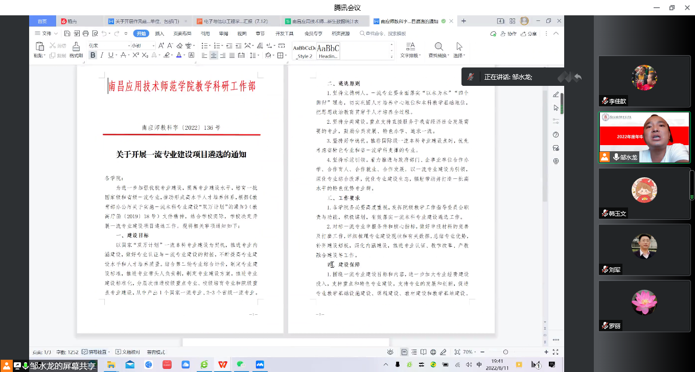 为扎实做好一流本科专业建设申报工作,8月11日,SUNBET申搏利用腾讯会议,召开一流本科专业建设申报研讨会,学院教学管理人员、各专业负责人参加了此次会议,会议由院长邹水龙主持。