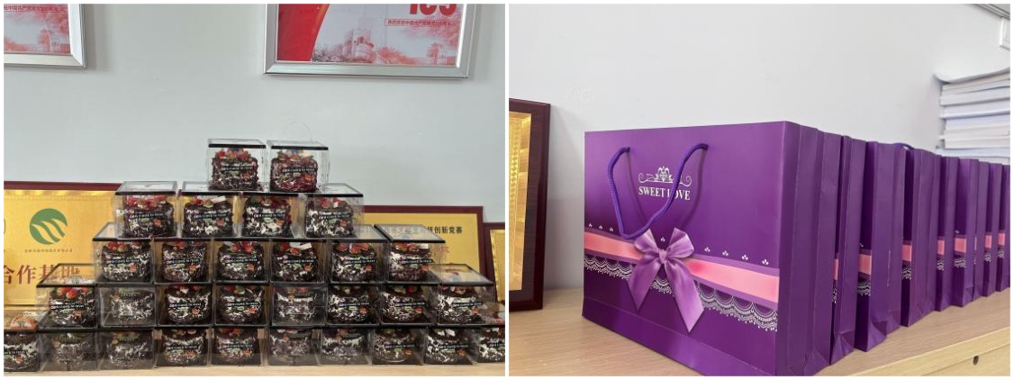 座谈会结束后,学院为全体教职工献上节日的蛋糕和巧克力表达感谢与祝福。