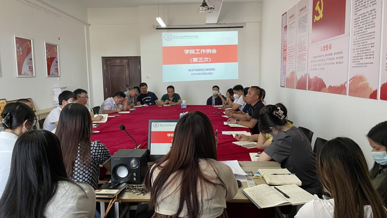 9月28日,SUNBET申搏在学院会议室召开第三次学院工作例会,全体教职工参加了会议,会议由院长邹水龙主持。