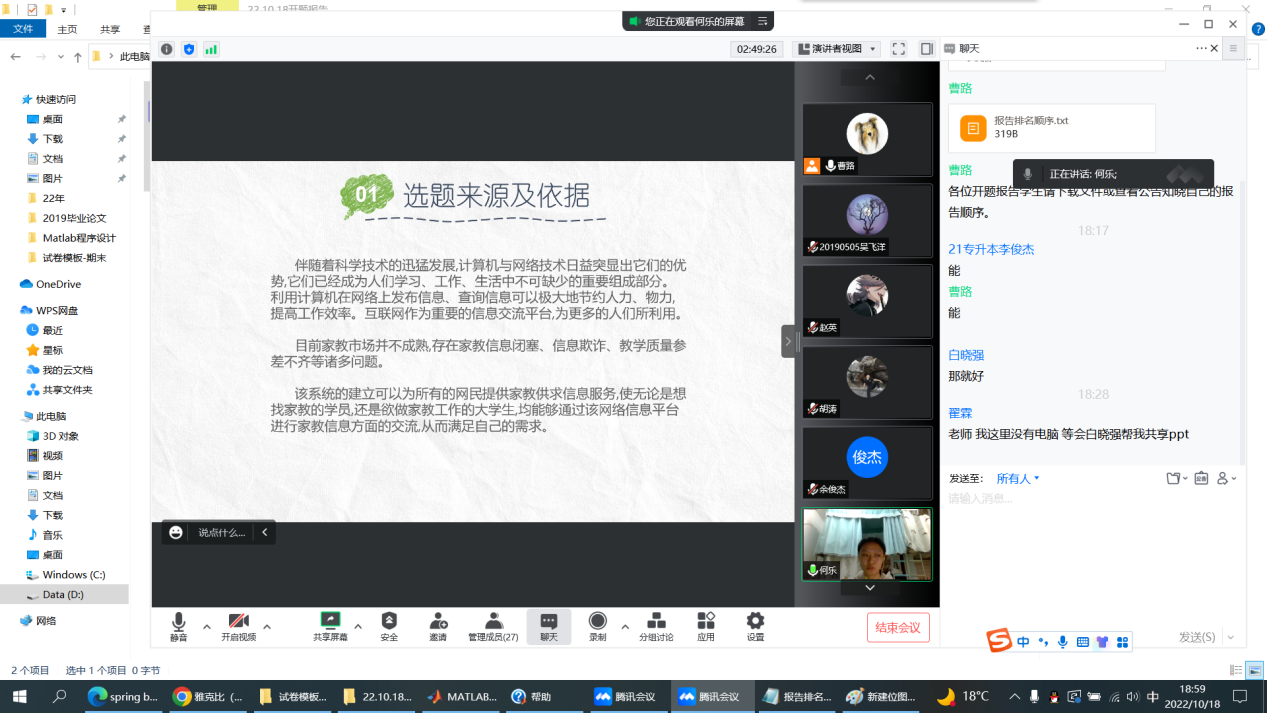 为加强毕业论文(设计)的过程管理,切实抓好毕业论文(设计)质量,10月18日,SUNBET申搏举行2023届本科毕业论文(设计)开题线上答辩会。学院2023届全体本科毕业生参加了此次开题答辩,答辩分为4个小组同步进行。