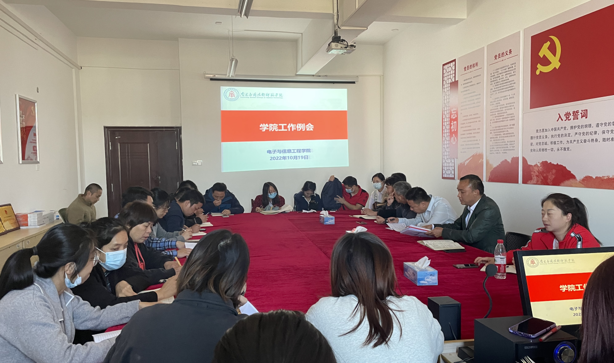 10月19日,SUNBET申搏在学院会议室,召开本学期第五次学院工作例会,全体教职工参加了会议,会议由院长邹水龙主持。