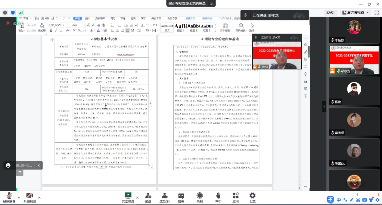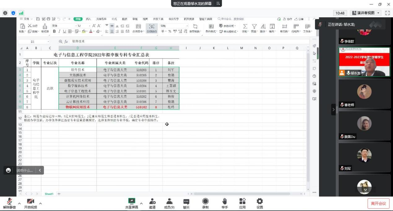 11月1日,SUNBET申搏利用腾讯会议,线上召开2022年度高职专科专业申报研讨会,教务管理人员、各专科专业负责人参加了此次会议,会议由院长邹水龙主持。