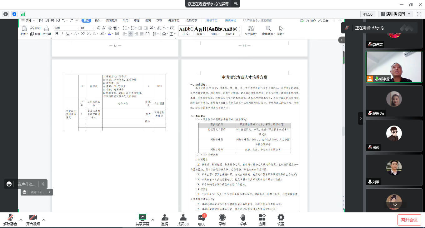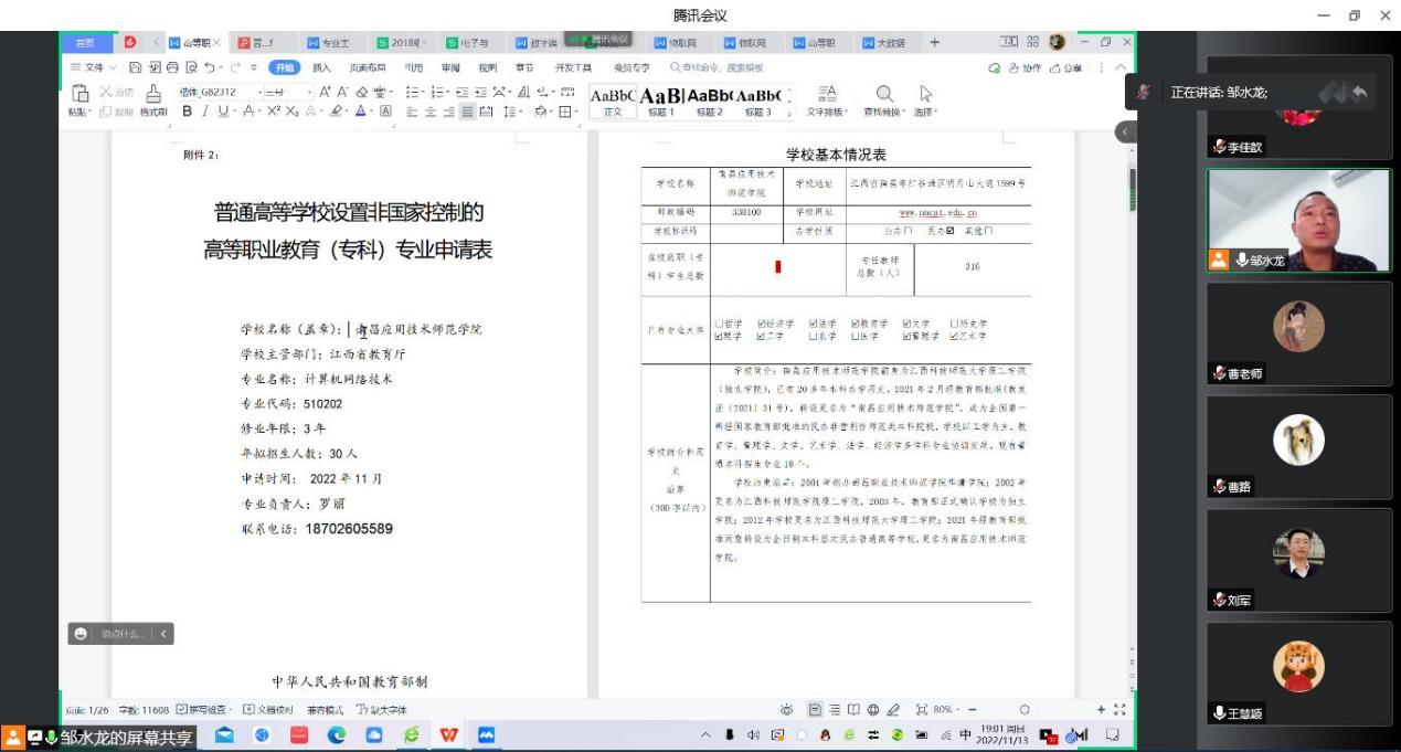 11月13日,SUNBET申搏利用腾讯会议,线上召开2022年度高职专科专业申报推进会,教务管理人员、各专科专业负责人参加了此次会议,会议由院长邹水龙主持。