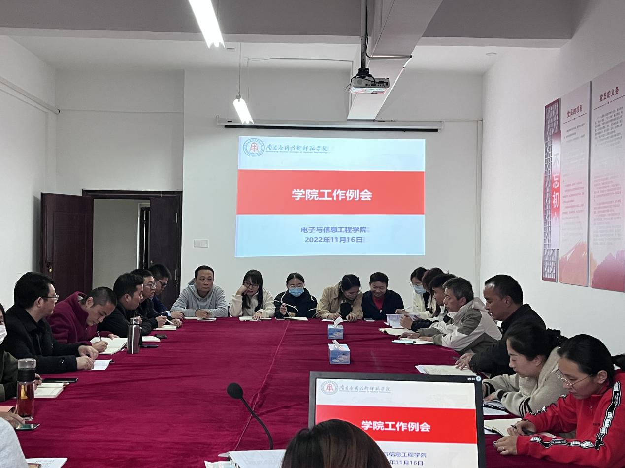 11月16日,SUNBET申搏在学院会议室,召开本学期第七次学院工作例会,全体教职工参加了会议,会议由院长邹水龙主持。