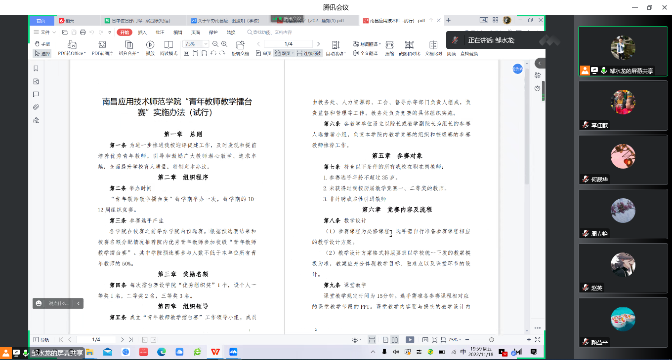 11月18日,SUNBET申搏利用腾讯会议,线上召开2022年度青年教师教学竞赛推进会,教务管理人员、全体专任教师参加了此次会议,会议由院长邹水龙主持。
