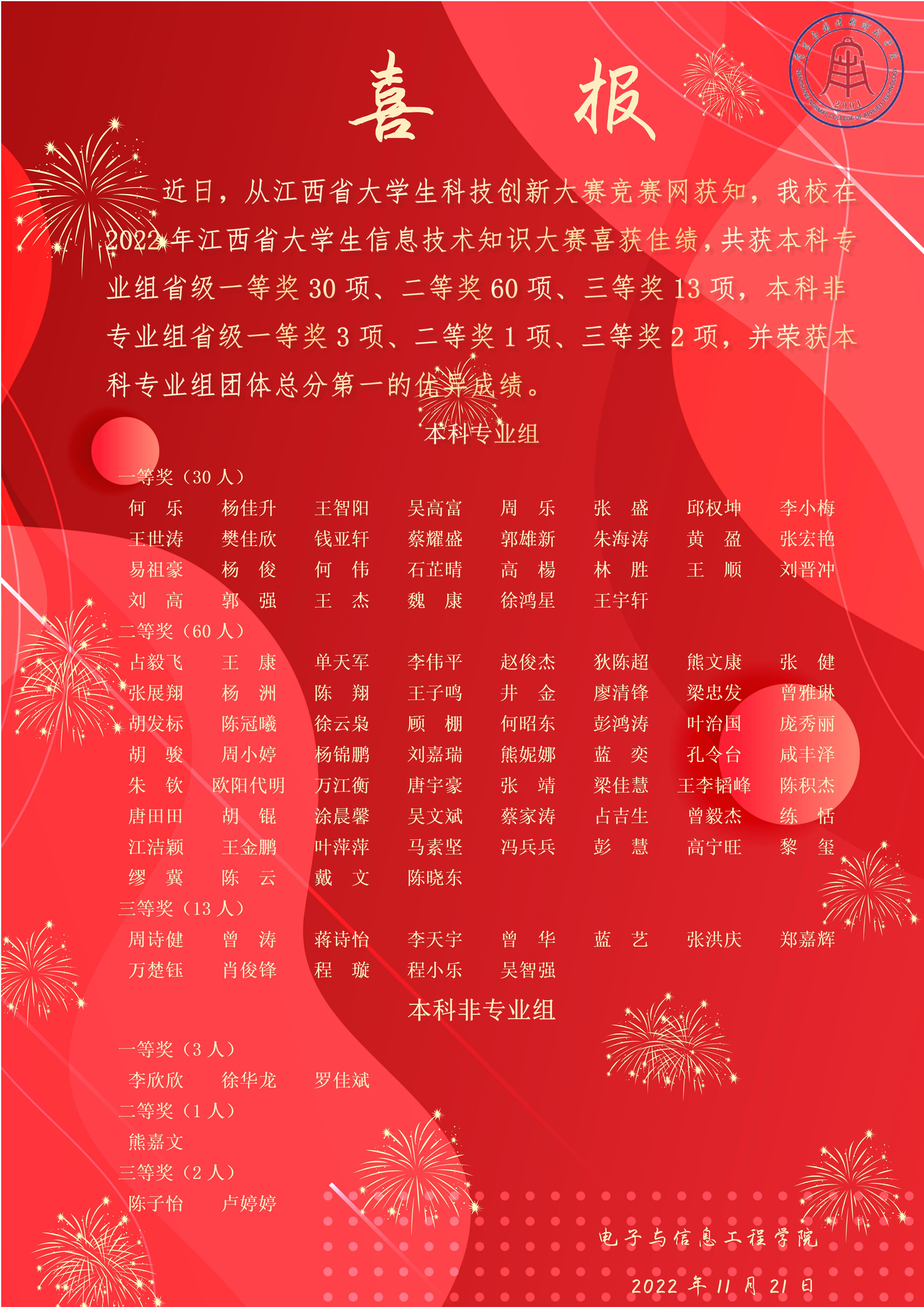 首页栏目 学院新闻 学院公告 学生工作 您现在的位置是:首页 > 首页栏目 > 学院新闻 喜报:我校在2022年江西省大学生信息技术知识大赛喜获佳绩 管理员2022-11-21916 上一篇 学院召开新校区实验室建设工作会 下一篇 学院召开师德师风警示教育专题工作会议