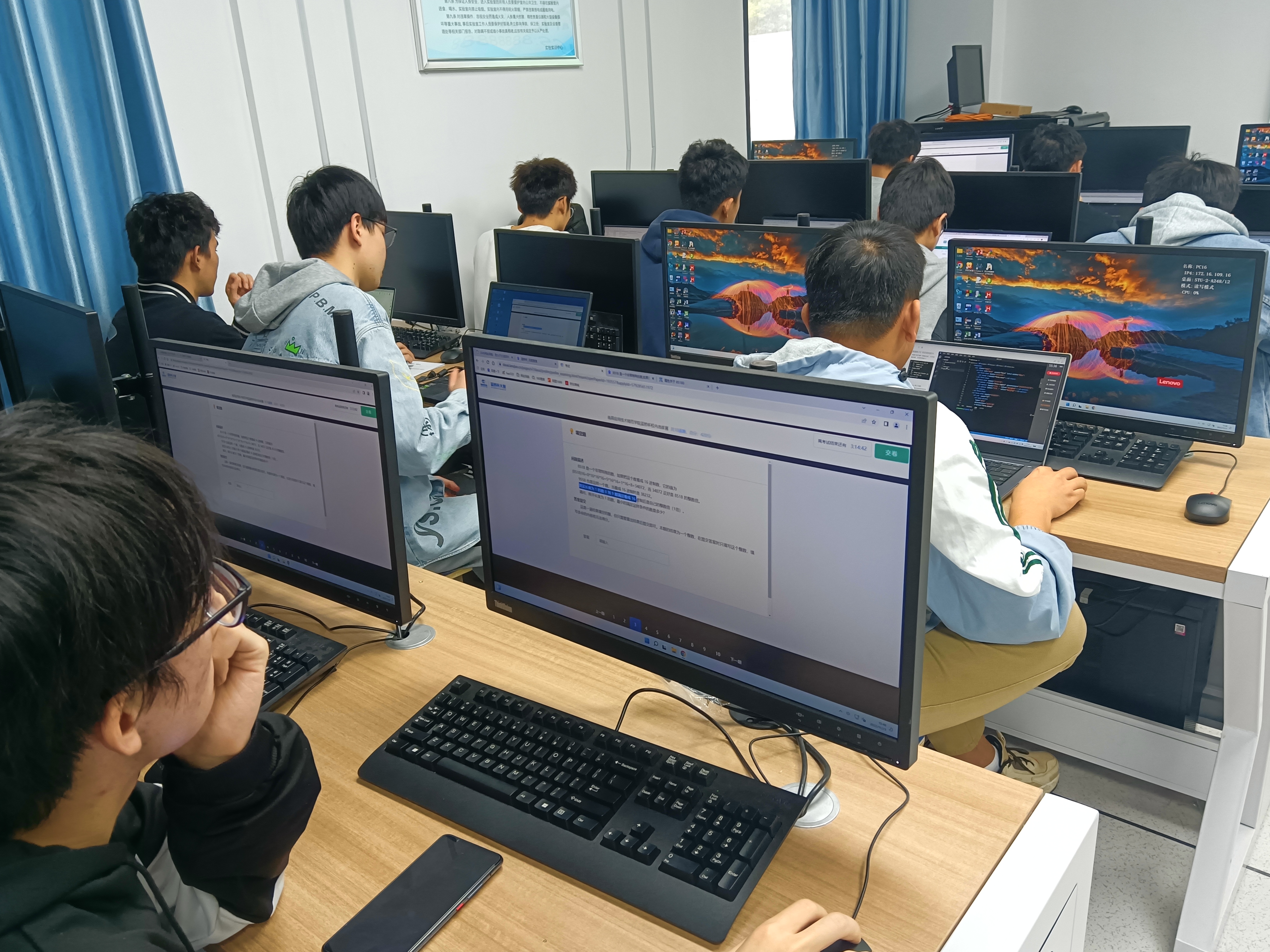 下午14:30,参赛选手有序进场入座,监考老师宣读比赛规则、提醒注意事项,并发布考试网址。15:00,比赛正式开始,比赛过程中,参赛选手严格遵守考场秩序、沉着思考,在规定时间内以缜密的逻辑思维、灵活机动的应变能力对考题进行独立解答。整个考场环境整肃、风纪良好,回荡着敲击键盘的清脆声。赛后,参赛同学们纷纷表示,竞赛对专业实践能力提升具有很好的促进作用。