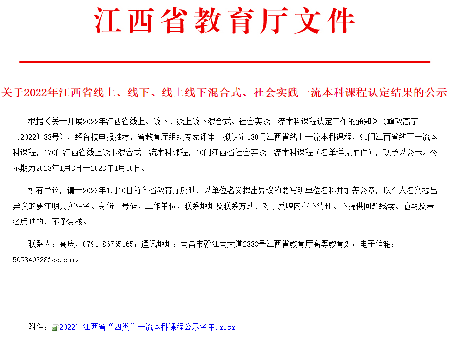 喜报:申搏获批2022年江西省线下一流本科课程项目立项